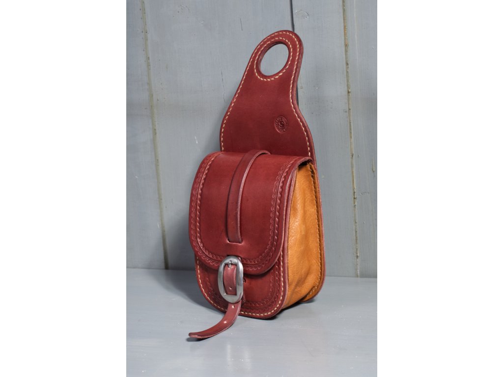 Praktická brašna na hrušku westernového sedla. Dá se snadno z hrušky sejmout a vzít s sebou. Vnitřní rozměr brašny je cca 18×13×8 cm