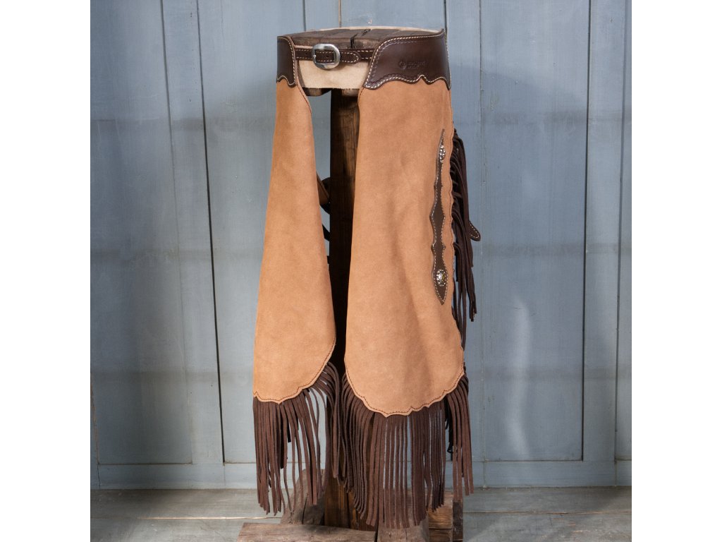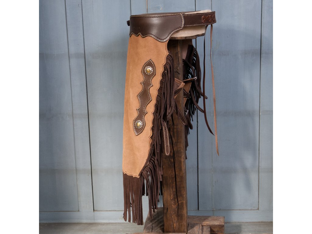 Chinks zdobené bordurou shell a conchos s květinovým motivem