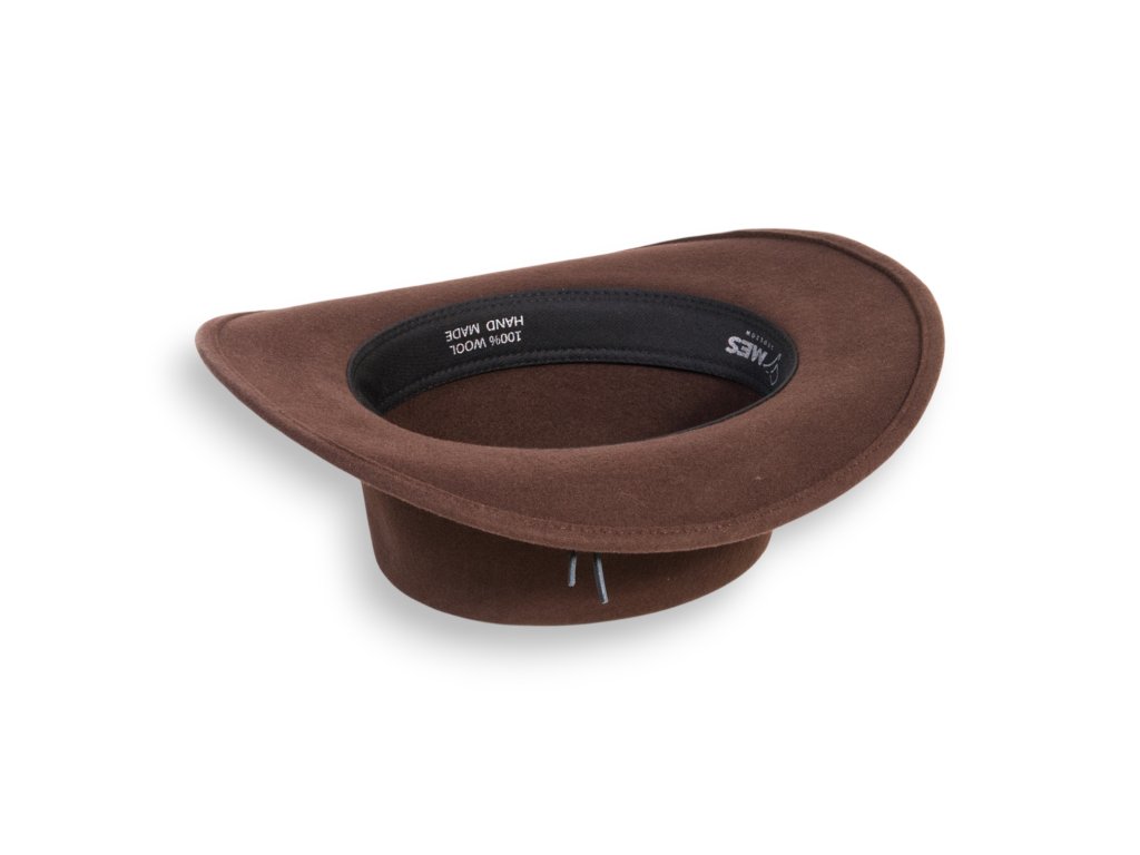 Stylový klobouk vyrobený z vlněného filcu, středně vyztužený, s elegantním koženým páskem. Krempa je široká 7 cm a je stylově zahnutá směrem dolů, což zajišťuje univerzální a nadčasový vzhled. Střecha klobouku má výšku 9 cm, což je velmi elegantní.