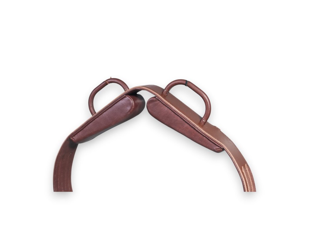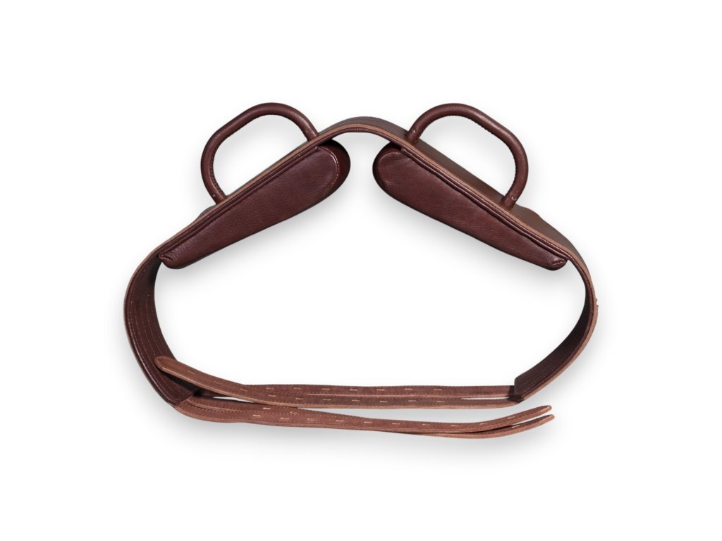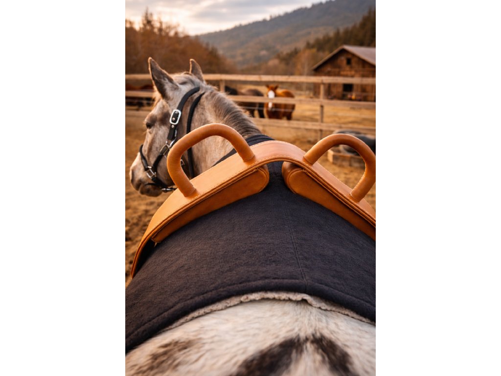 Pevná madla na koně určená pro hiporehabilitaci a terapeutické ježdění. Konstrukce je postavená na nerezovém rámu vyráběném na míru a potažená prvotřídní třísločiněnou kůží. Madla mají ergonomický tvar s plochým vrškem úchopu, který je výrazně pohodlnější při delším držení než běžné půlkruhové úchopy. Vhodná pro práci s dětmi i dospělými klienty.