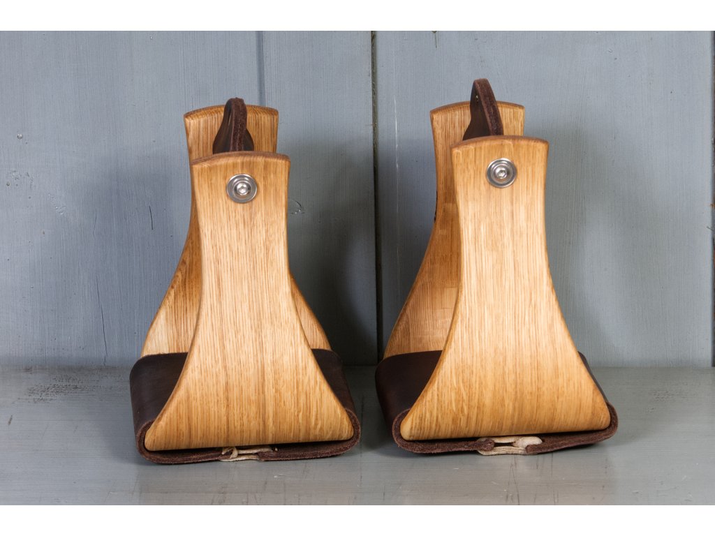 Westernové třmeny z ručně ohýbaného dubového, nebo jasanového dřeva.